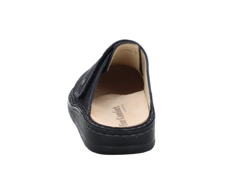 Sportlich-bequemer Clog zum Reinschlupfen von Finn Comfort in blau. Die Einlage ist herausnehmbar, somit können die eigenen, orthopädischen Einlagen im Austausch hineingelegt werden.