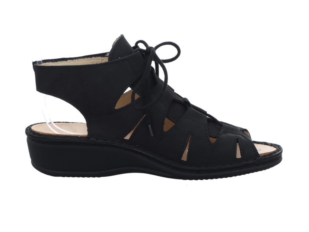 Dieses Modell der Marke Finn Comfort in der farbe schwarz garantiert Ihnen bequemen und guten Halt und stützt sanft und weich Ihren Fuß. Gleichzeitig kann man die Einlagen herausnehmen und durch eigene, orthopädische Einlagen ersetzen.