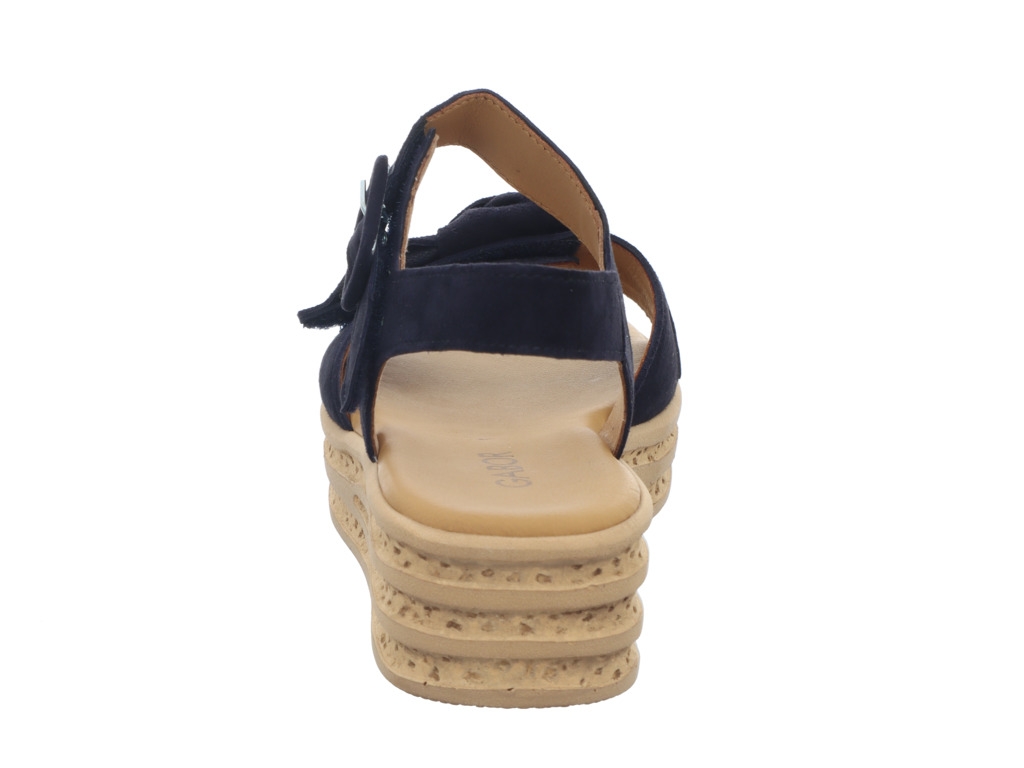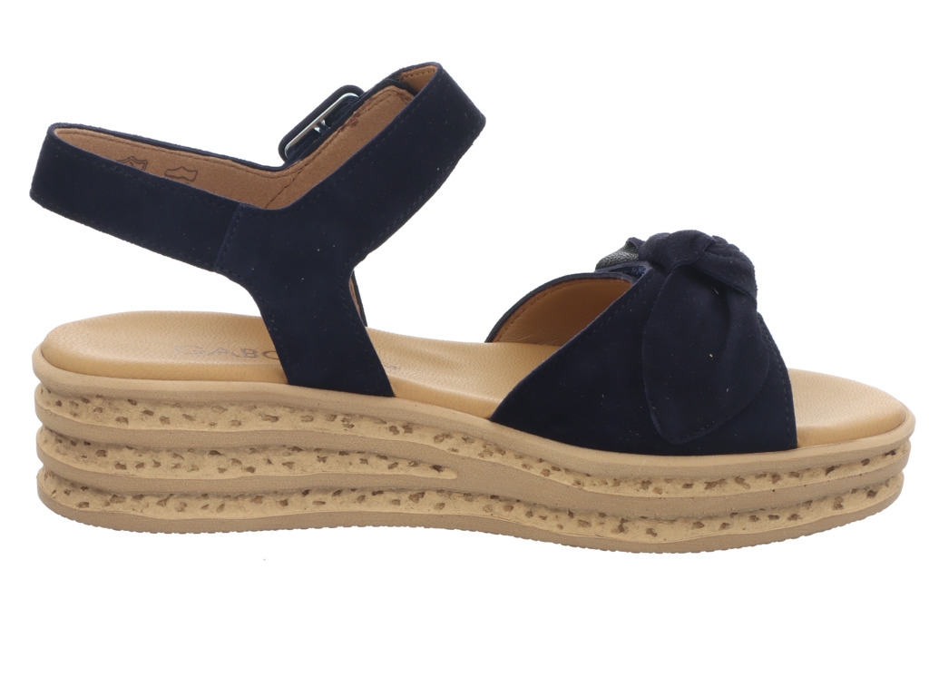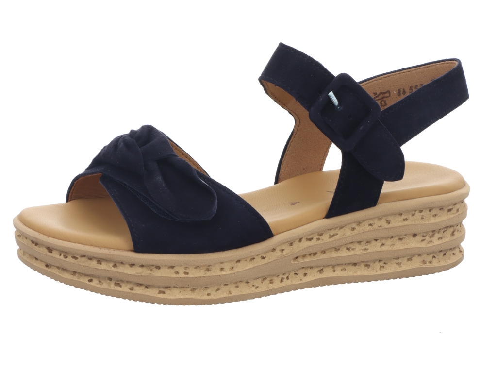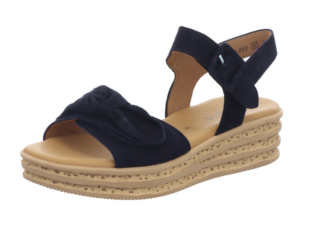 Keilsandalette der Marke Gabor aus weichen Obermaterialien in blau und toller Sohlenoptik. Gleichzeitig bequem und trotzdem schick, so muss es im Sommer sein.