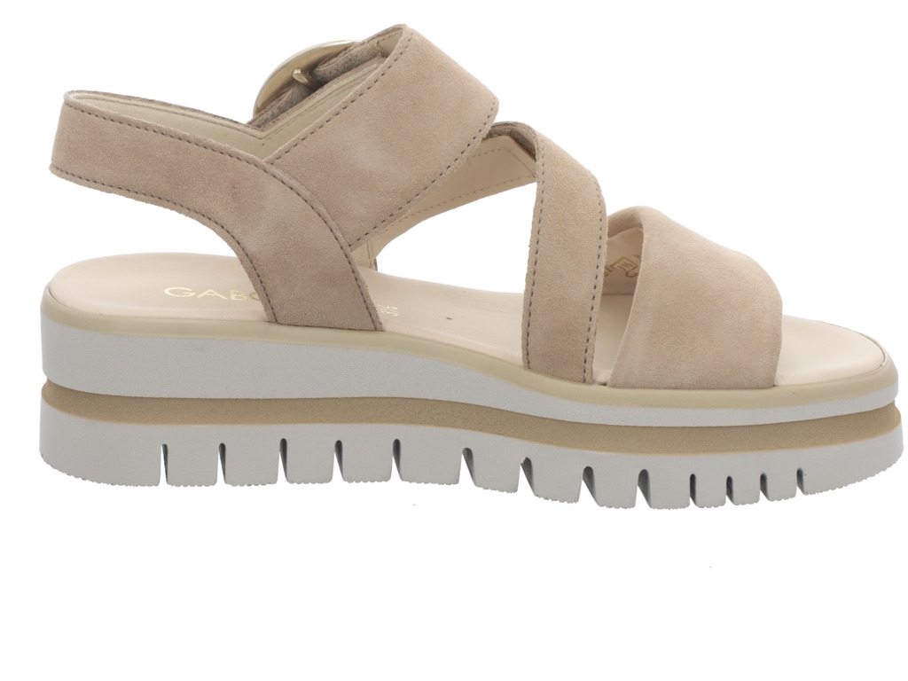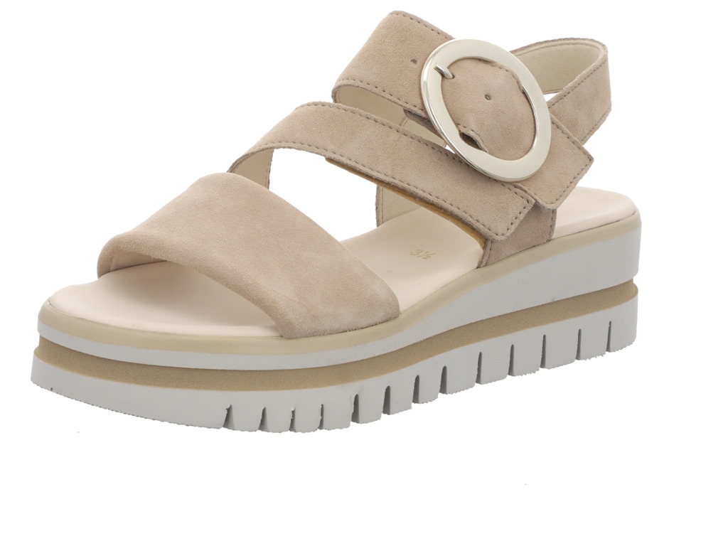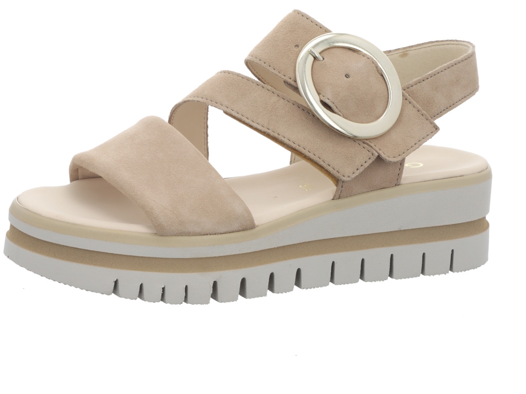 Keilsandalette der Marke Gabor aus weichen Obermaterialien in beige und toller Sohlenoptik. Gleichzeitig bequem und trotzdem schick, so muss es im Sommer sein.