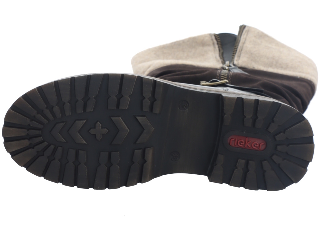 Sportlicher-kerniger Winterstiefel mit Warmfutter von Rieker in schwarz-braun. Die griffige Sohle ist rutschfest und flexibel, das weiche Obermaterial ist bei entsprechender Pflege für fast jedes Wetter gut!