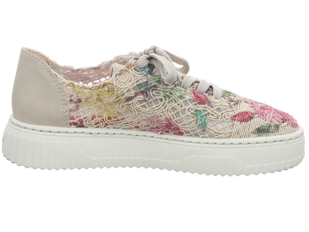 Dieser bequeme Sommer-Schnürschuh von Rieker verbindet gute Passform mit gelungener, sommerlicher Optik in der farbe beige-kombi. Der Fuß ist angenehm trocken und ermüdet kaum.