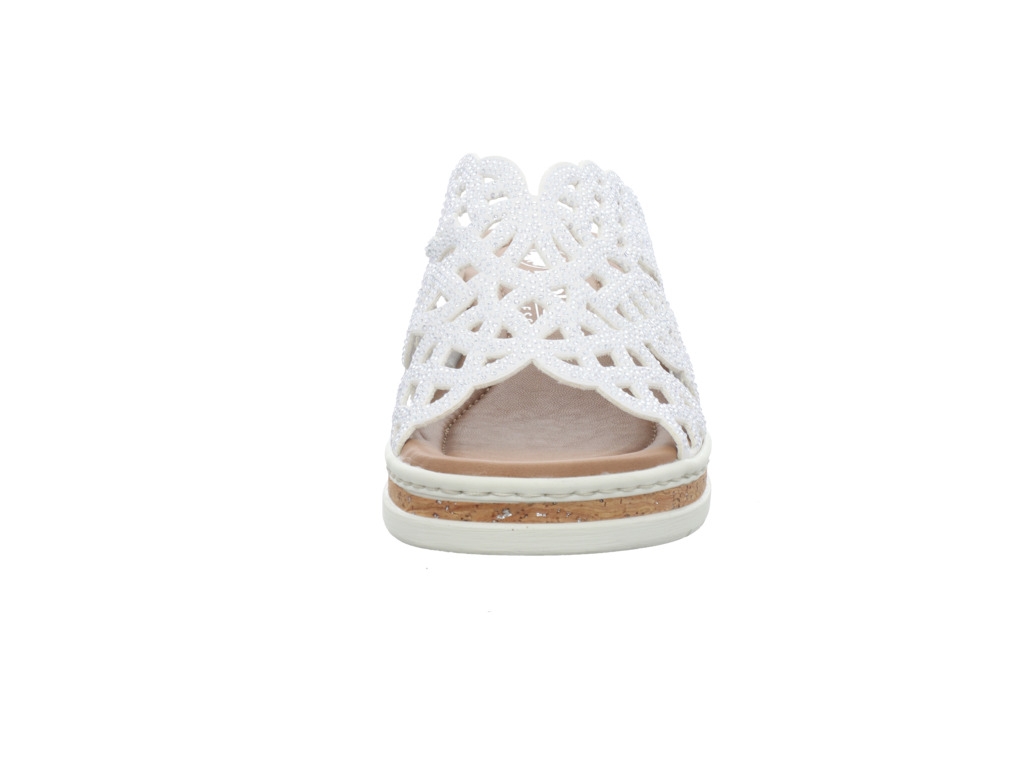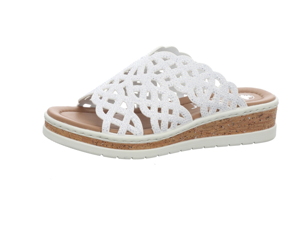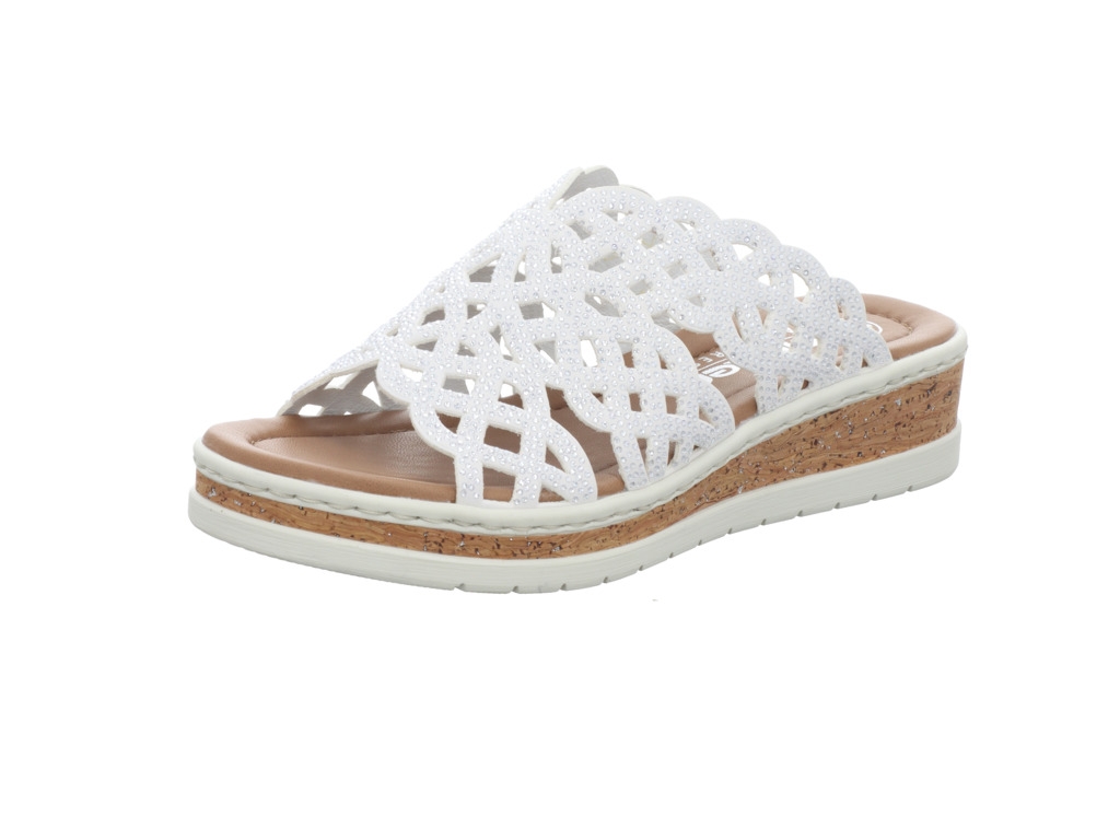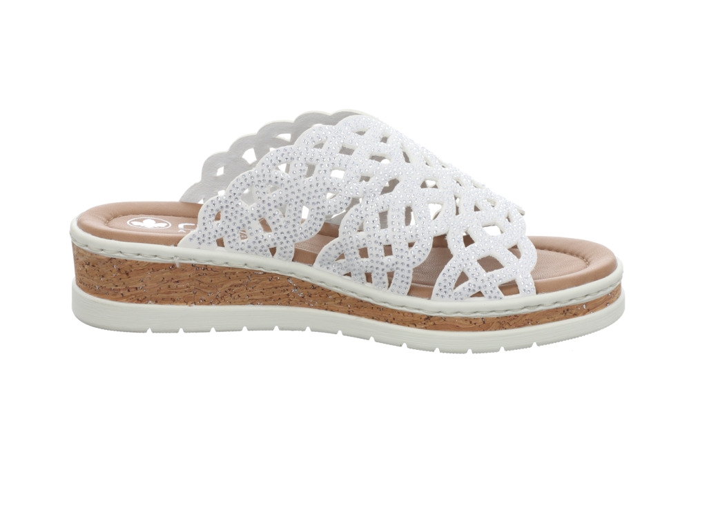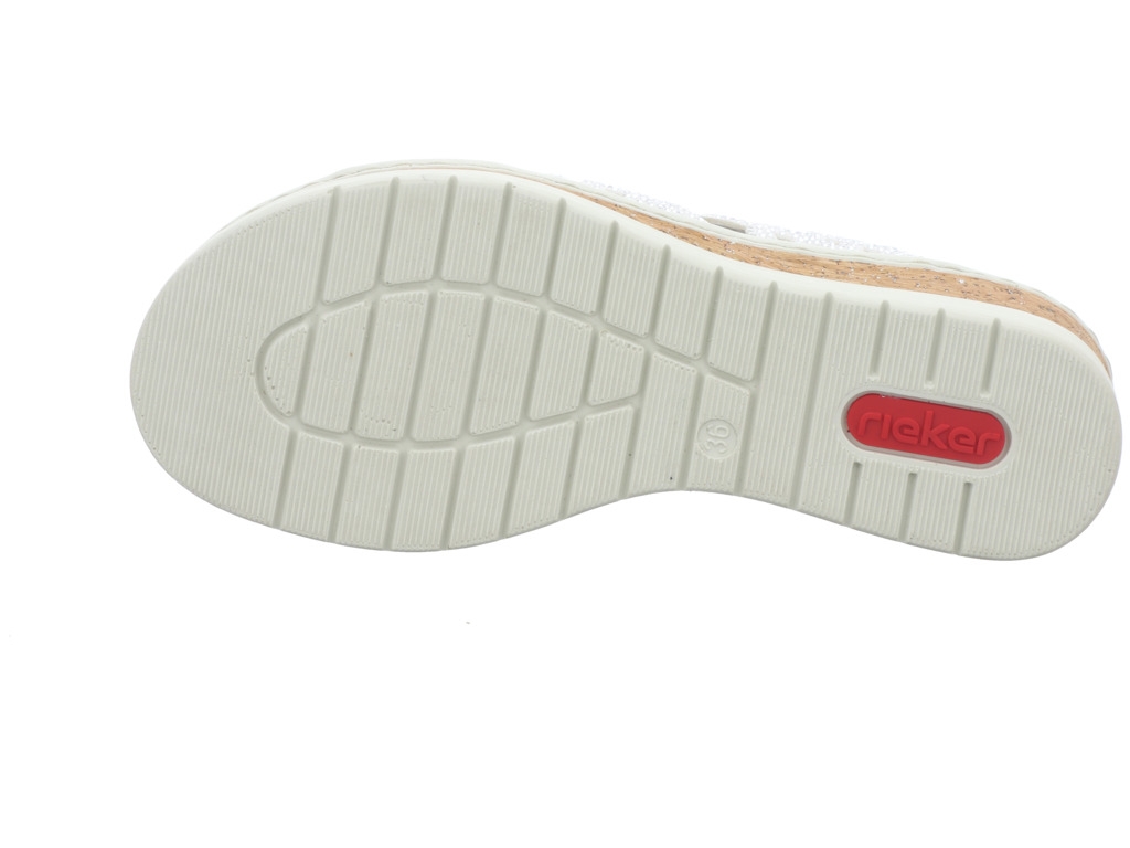 Mit dieser flachen und modischen Pantolette von Rieker kann der Sommer kommen. Das weiche Obermaterial in der Farbe gold/silber schmiegt sich gut an den Fuß. Das Modell passt im Sommer zu nahezu allen Oberteilen.