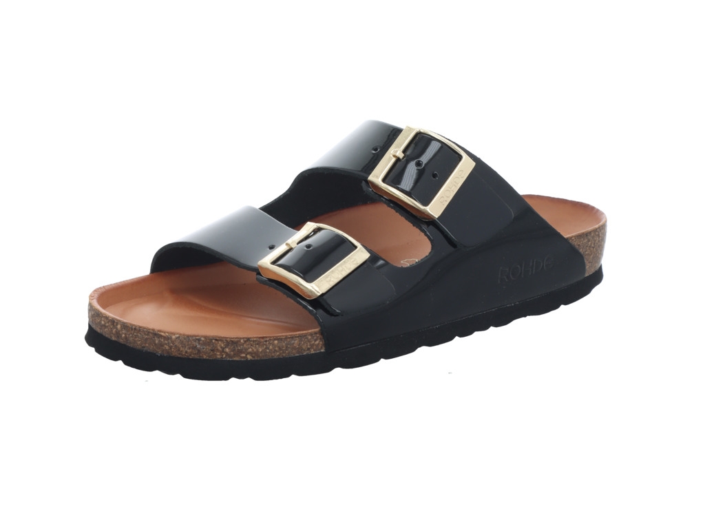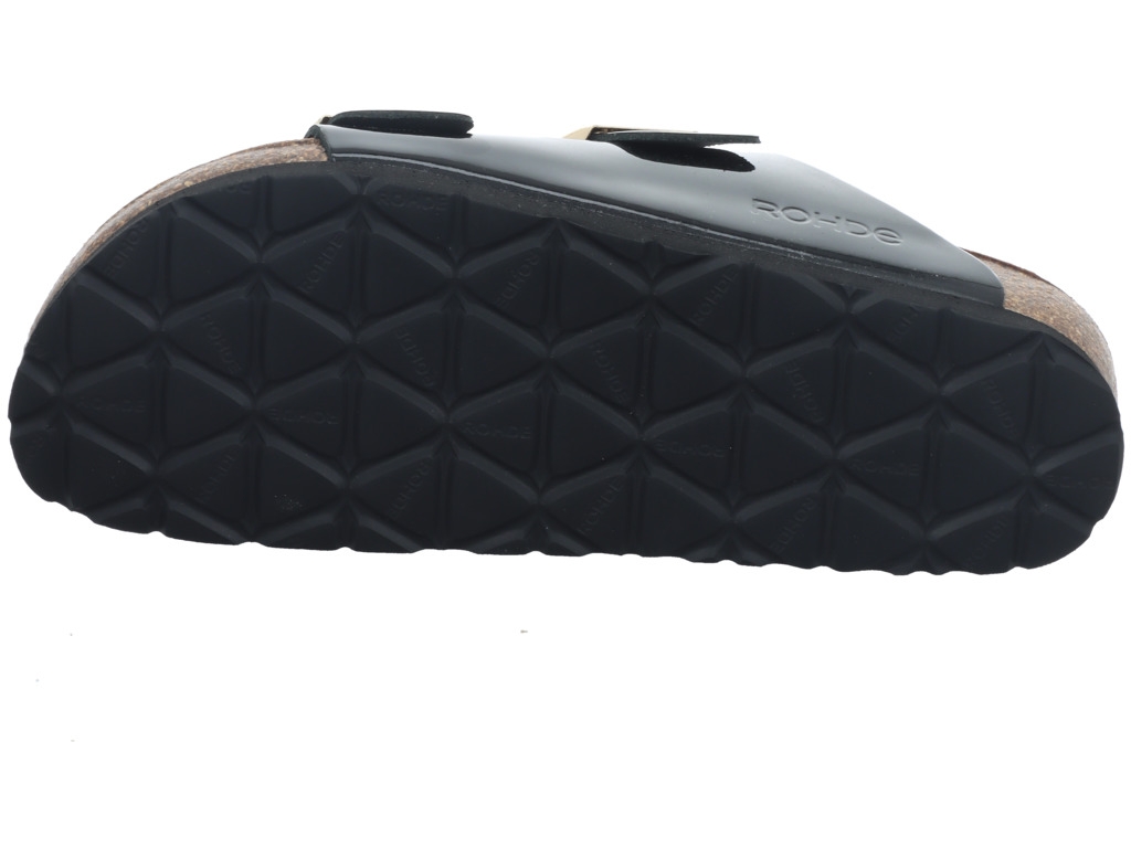 Leichte Pantolette in schwarz von Rohde. Das bequeme Fußbett ist gerade in der heißen Jahreszeit gut und sorgt für einen ausgeruhten und angenehmen 'Stand'.