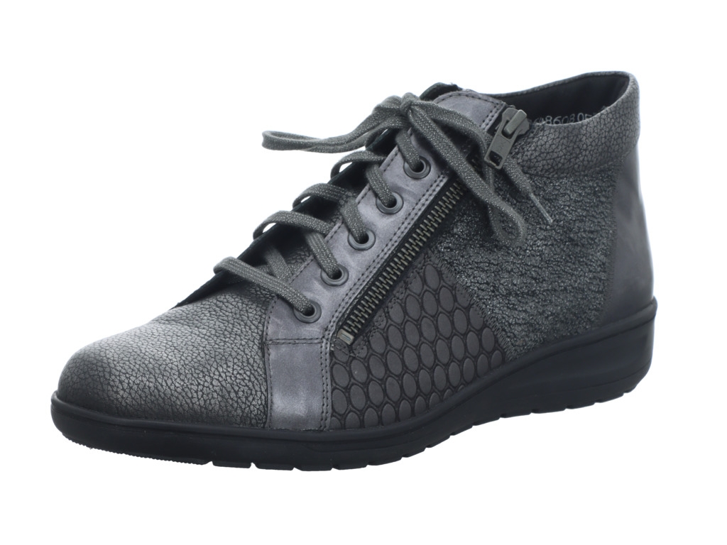 Sportlich-bequemer Schnürstiefel in grau von Solidus mit leichtem Innenfutter. Die rutschfeste Laufsohle ist biegsam und weich. Die Schnürung garantiert eine optimale Passform.