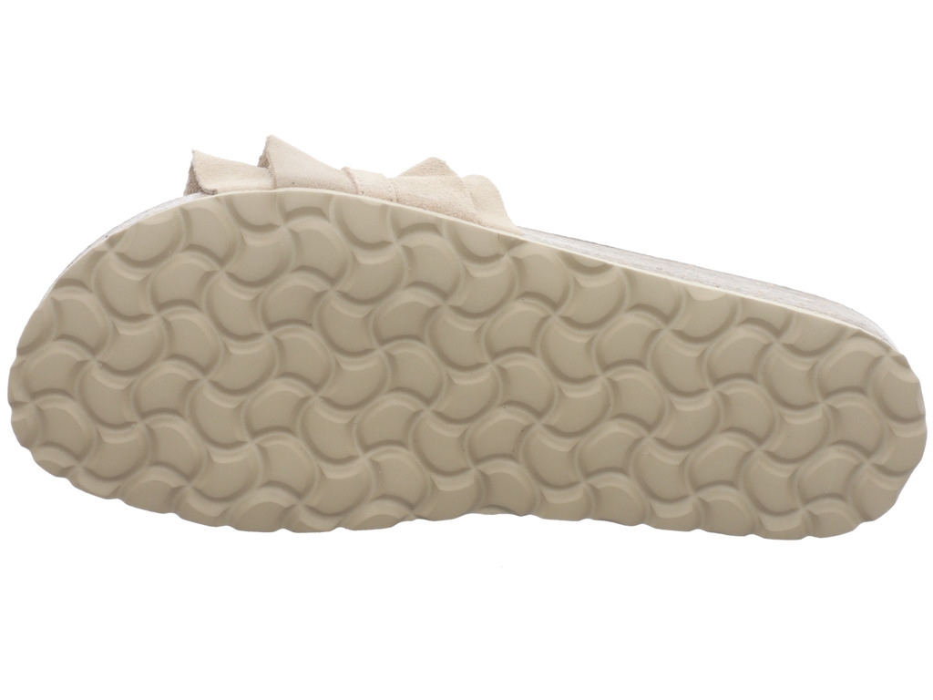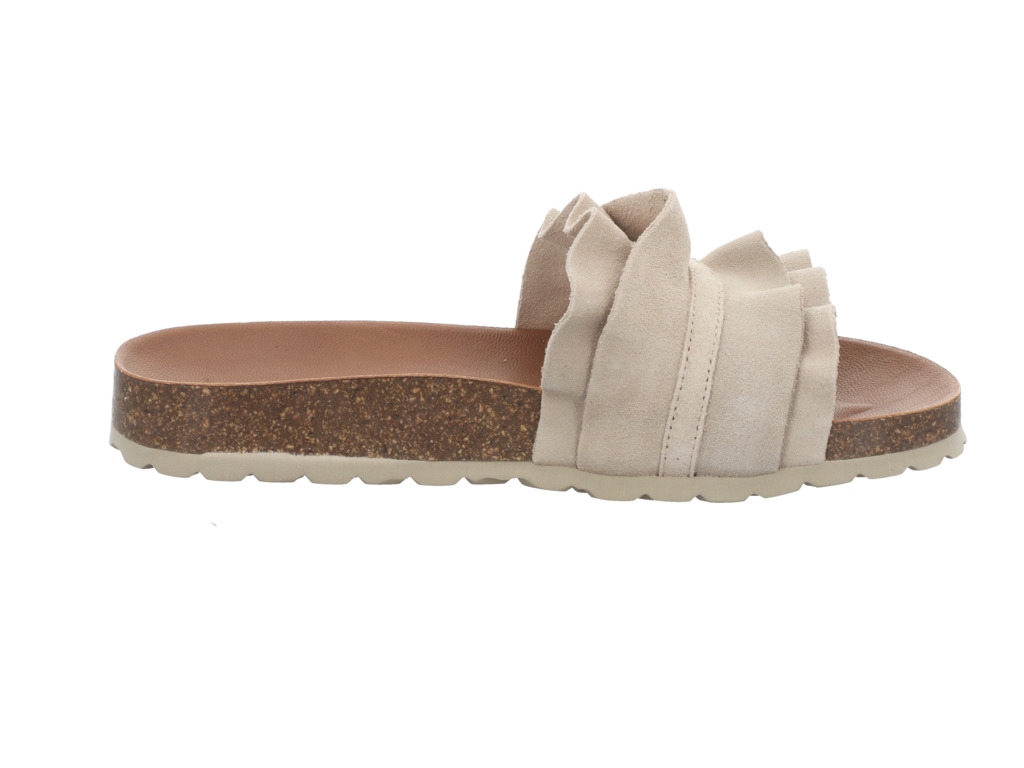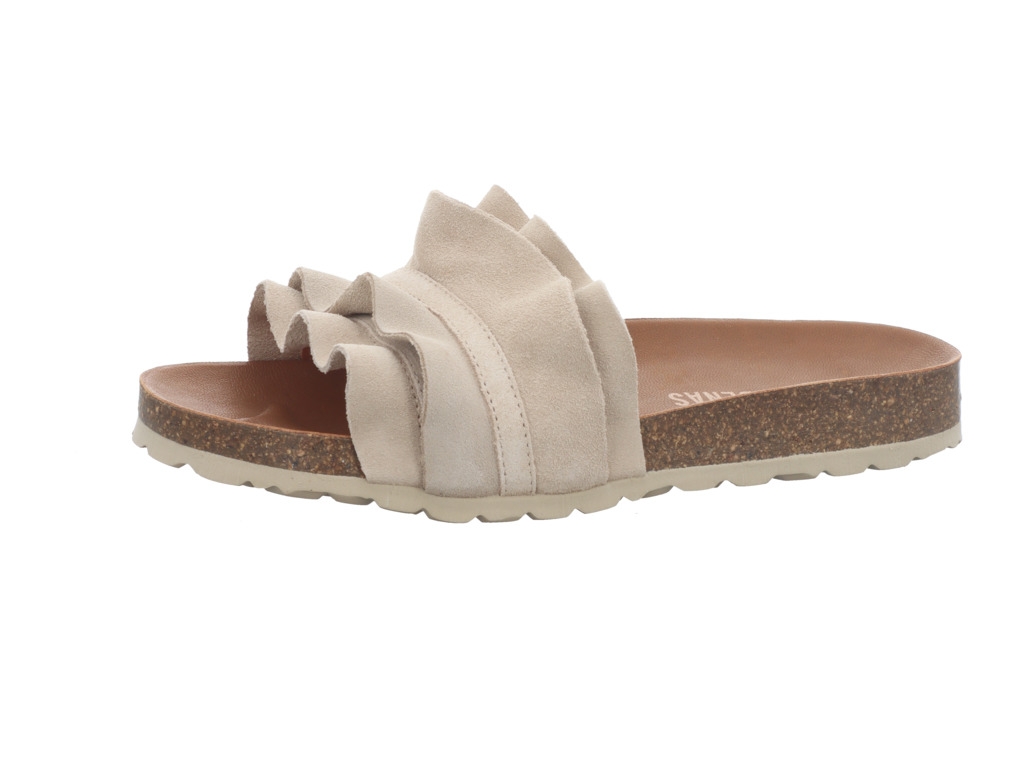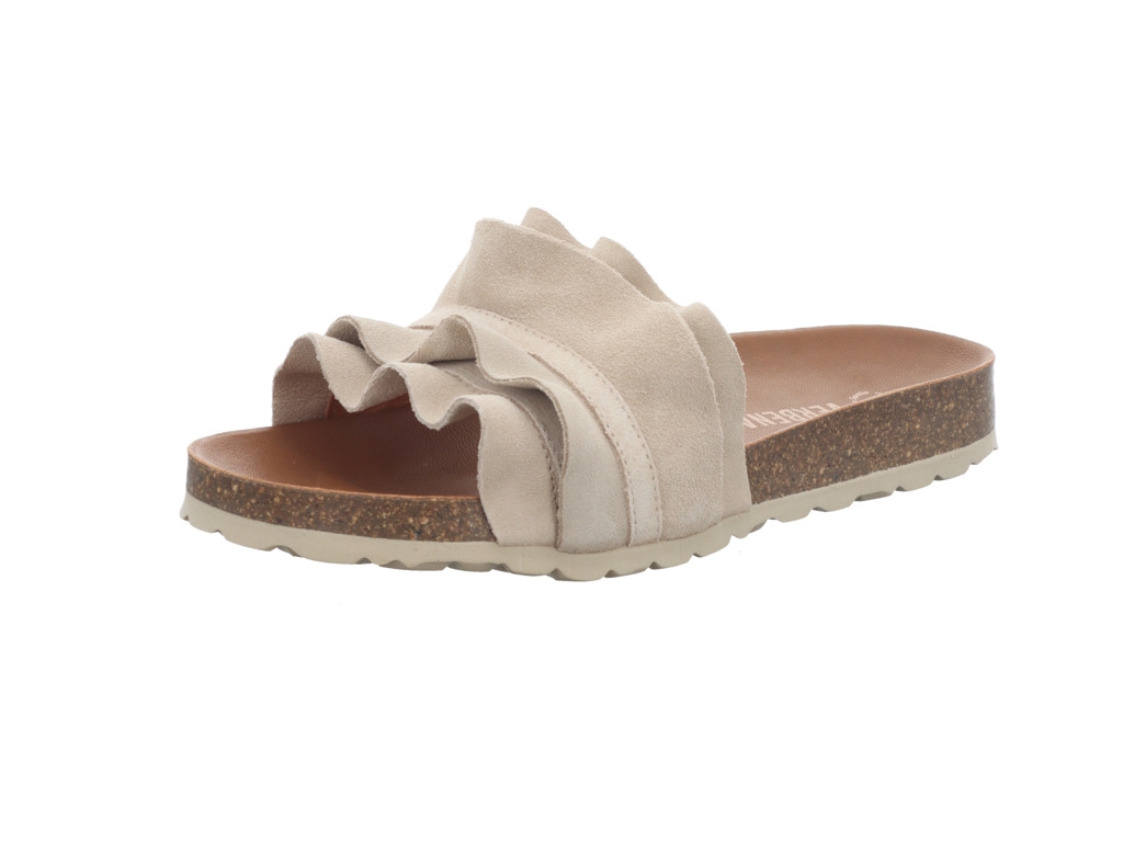 Leichte Pantolette in beige von Verbenas. Das bequeme Fußbett ist gerade in der heißen Jahreszeit gut und sorgt für einen ausgeruhten und angenehmen 'Stand'.