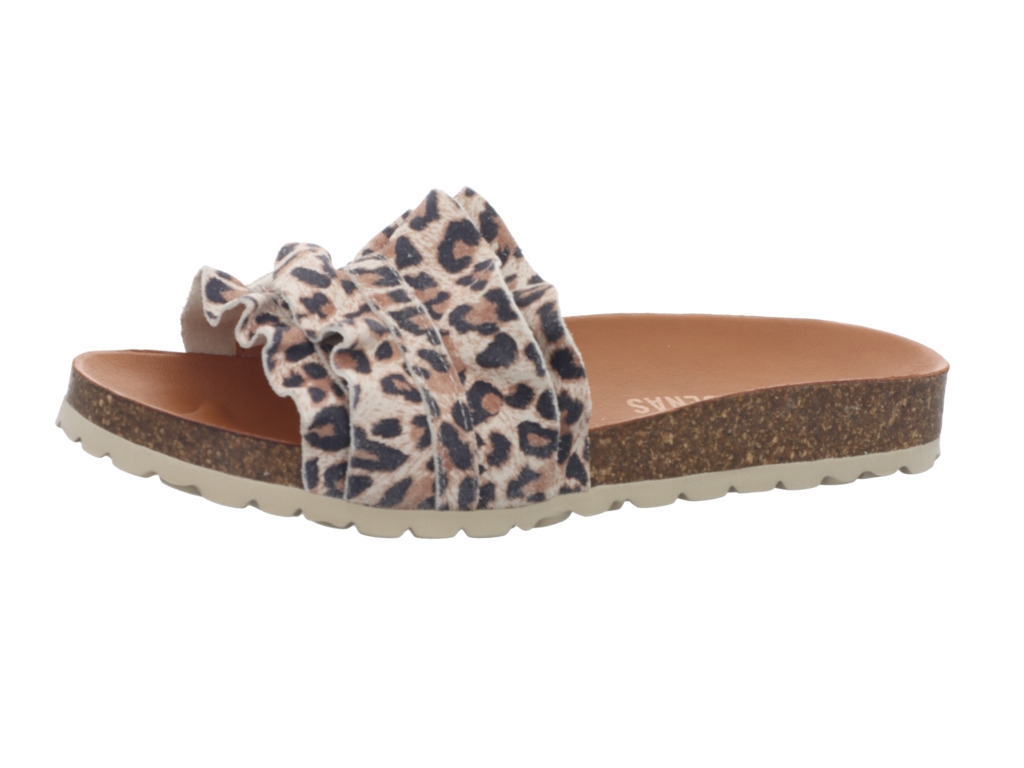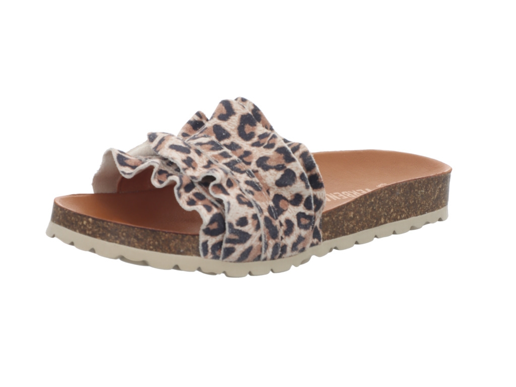 Leichte Pantolette in braun-kombi von Verbenas. Das bequeme Fußbett ist gerade in der heißen Jahreszeit gut und sorgt für einen ausgeruhten und angenehmen 'Stand'.
