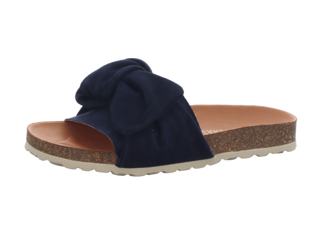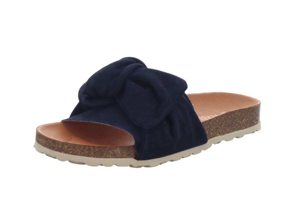 Leichte Pantolette in blau von Verbenas. Das bequeme Fußbett ist gerade in der heißen Jahreszeit gut und sorgt für einen ausgeruhten und angenehmen 'Stand'.
