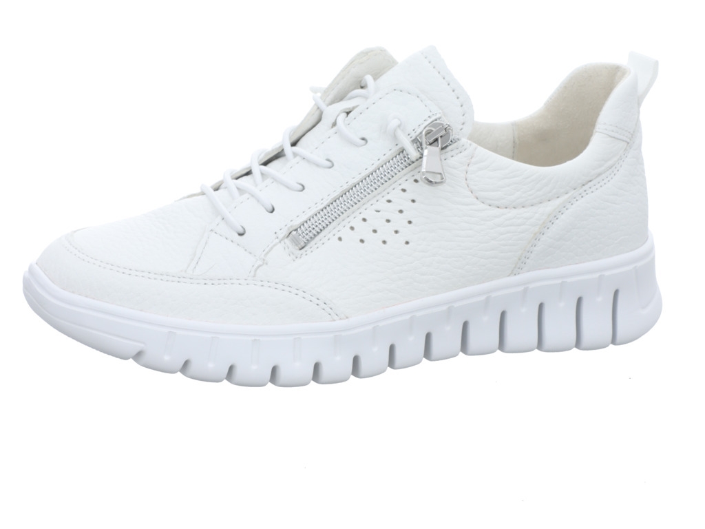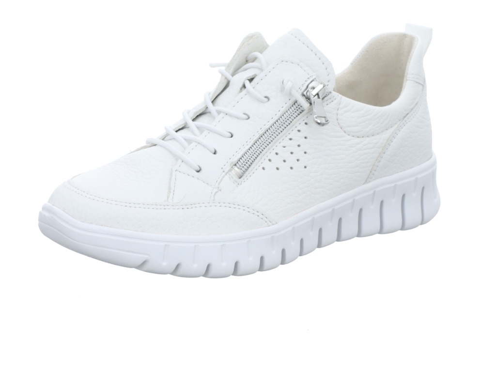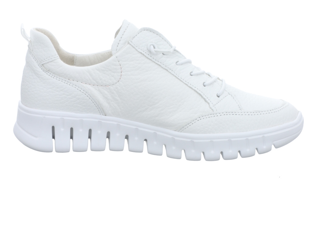 Sportlich-bequemer Halbschuh zum Schnüren in weiß von Waldläufer. Sein Fußbett ist herausnehmbar, damit eignet sich der Schuh auch für Ihre losen Einlagen.