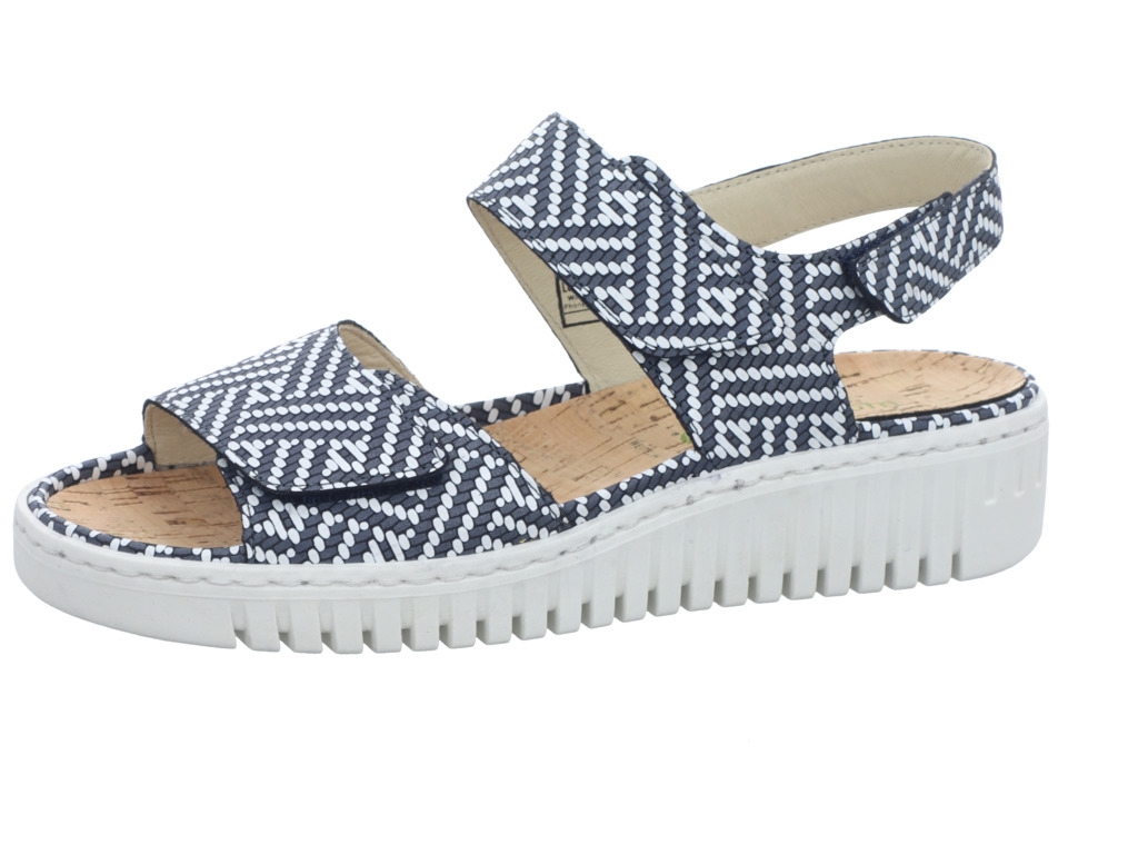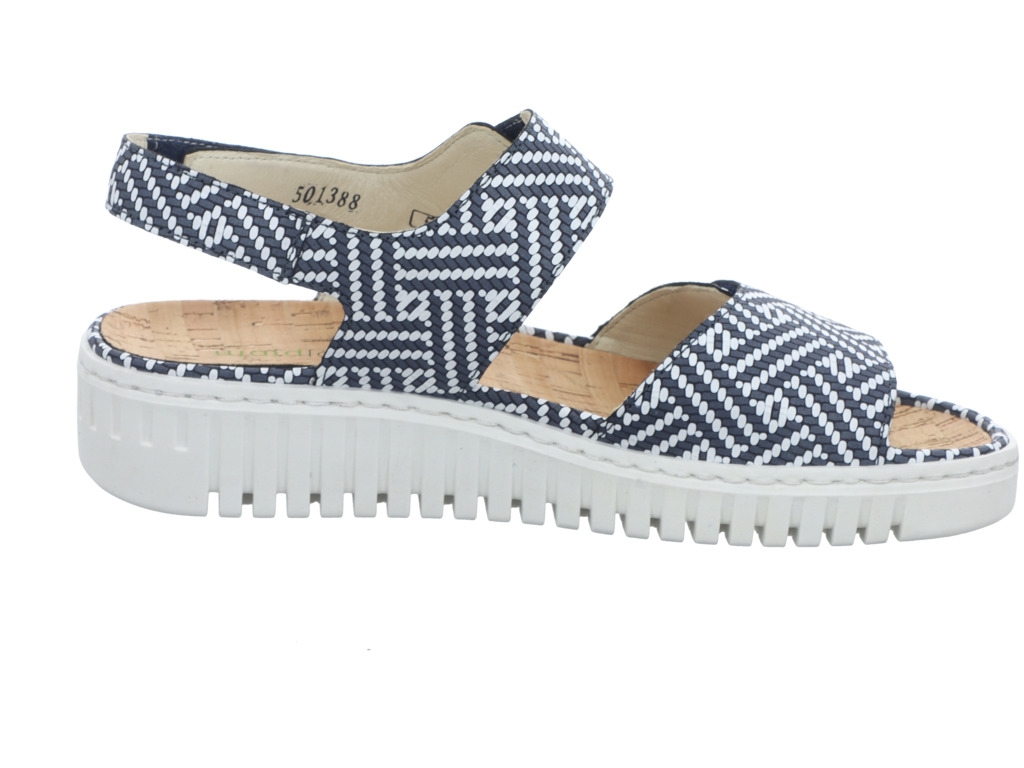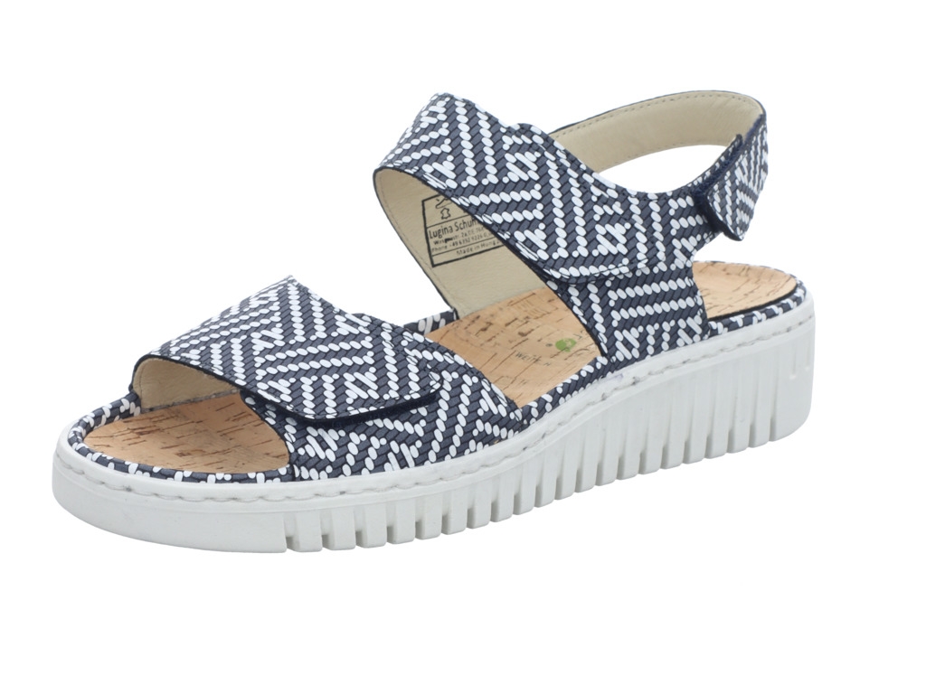 Dieses Modell der Marke Waldläufer in der farbe blau-weiß garantiert Ihnen bequemen und guten Halt und stützt sanft und weich Ihren Fuß. Gleichzeitig kann man die Einlagen herausnehmen und durch eigene, orthopädische Einlagen ersetzen.